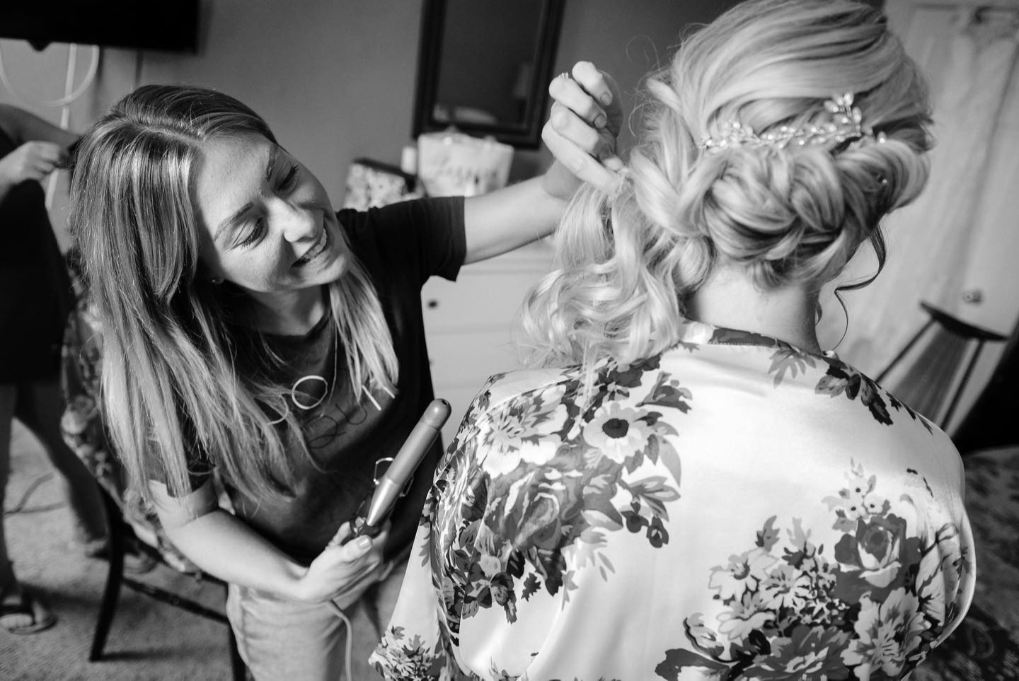 With eighteen years experience in the industry as a licensed cosmetologist, I began working at a salon in Annapolis. Quickly, I realized my deep passion for the art of hair. Over the years, I honed in my skills, refined my expertise, and nurtured a profound appreciation for the bridal industry. Experiencing the bride-to-be's "wow" moment as she looks into the mirror fills me with an indescribable sense of joy and passion. I have joined my sister on this journey, and together, we are a team dedicated to being the best.